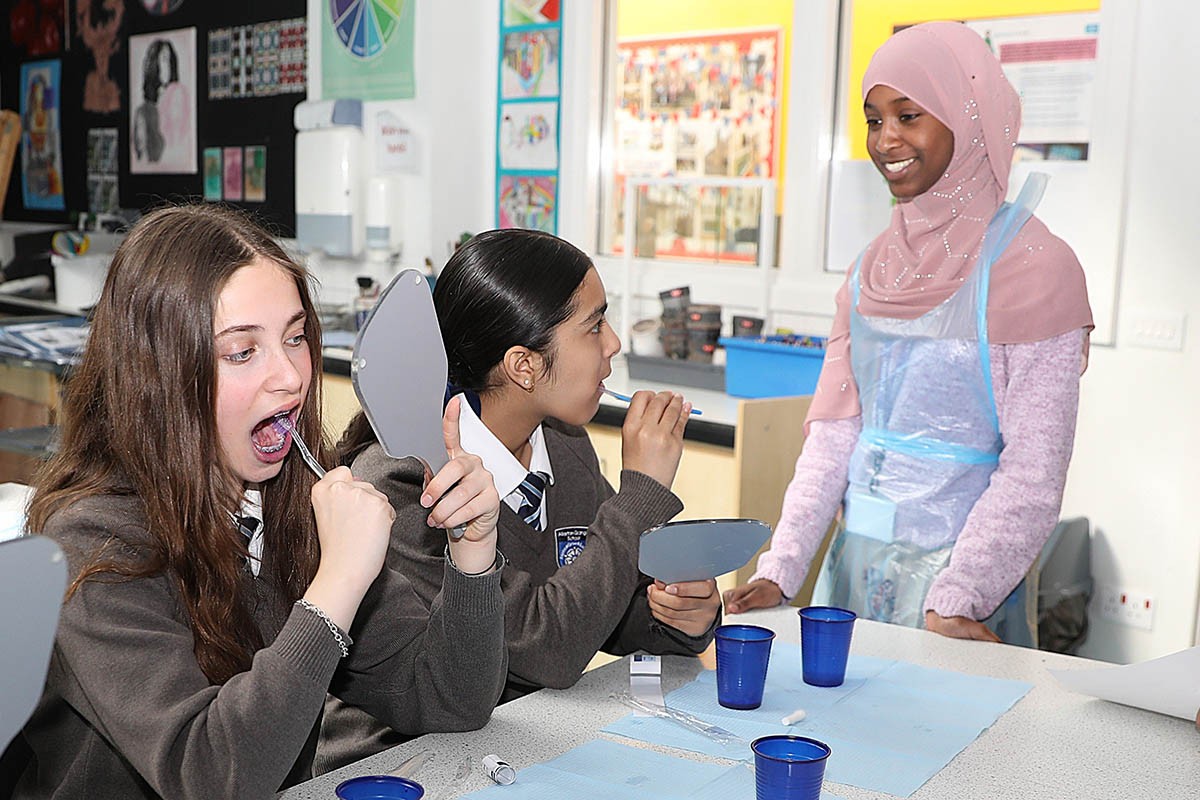By taking part in Raised in Yorkshire, oral health experts train Sixth Form students to deliver lessons to Year 7 students to help improve their tooth brushing skills, knowledge, and habits to prevent tooth decay.